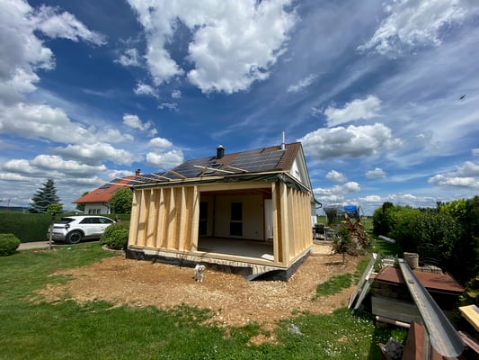 Anbau eines modernen Baukörpers an ein Bestandshaus in Weidenstetten in Holzbauweise