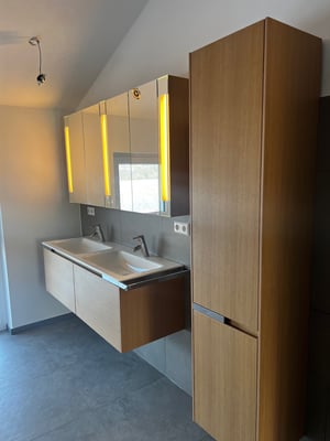 Umbau und Sanierung eines MFH in Westerstetten. Im Rahmen dieses ersten Projekts an diesem Objekt wurden im Jahr 2014 die Fenster getauscht, eine Gasleitung von der gegenüber liegenden Strassenseite ins Haus geführt, um dort die alte Heizungsanlage in eine moderne Gas Brennwertheizung austauschen zu können. In diesem Zuge wurden auch sämtliche Rohrleitungen und die Bäder erneuert. Zudem wurden auch die Elektroinstallationen auf den Stand der Technik erneuert.